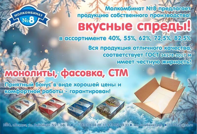 «Молкомбинат №8» был основан в 2000 году и на протяжении многих лет ведет непрерывную деятельность по производству масложировой продукции.